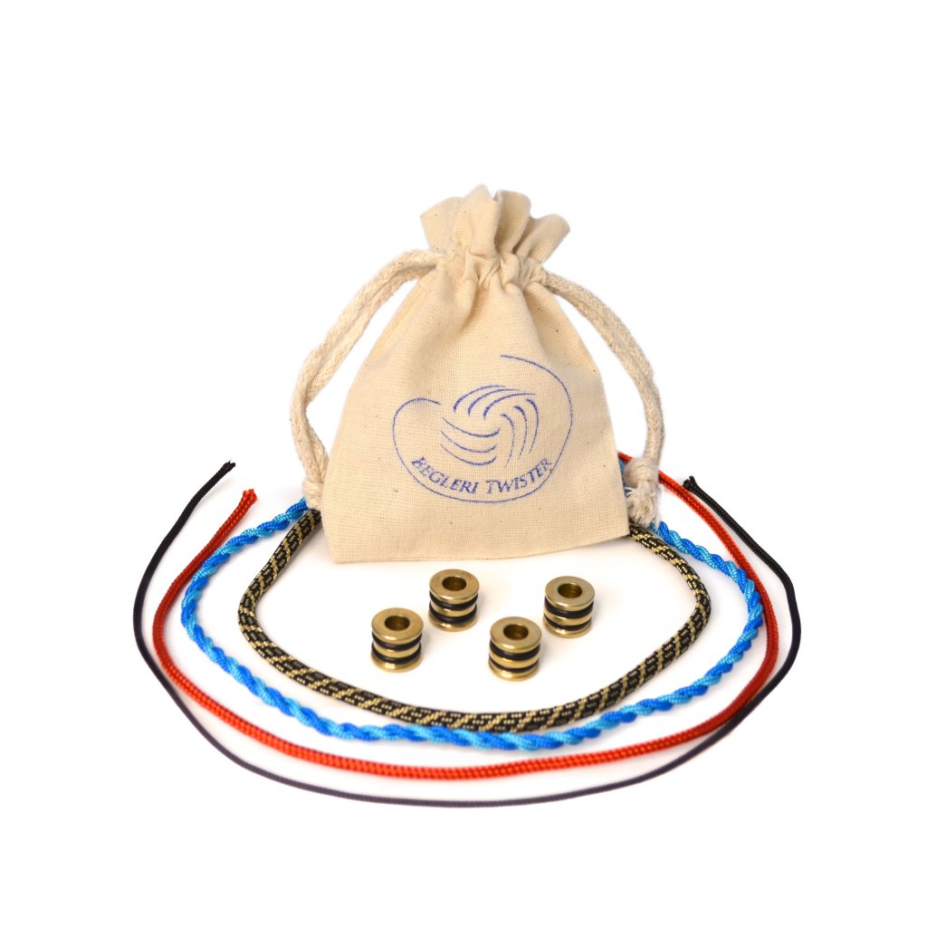 Na obou koncích tohoto begleri jsou 2 miniaturní beady (2x5g) z chirurgické oceli. Poctivá povrchová úprava zajišťuje zachování prestižního vzhledu i při intenzivní hře a pádech na tvrdý povrch. Jsou čiperné a poddajně reagují na podněty. Zakončení je provedeno buď bez uzlu, zatavením provazu, nebo různými uzly, které mohou být doplněny o třásně. Tímto si begleri přizpůsobujete nejen esteticky, ale zároveň i funkčně - ve variantě "bez uzlu" je jeden konec begleri (finální bead) 22 mm vysoký a váží cca 10,5 g. S velkým ozdobným uzlem dostaneme bead o výšce asi 30 mm a váze asi 11,4 g, záleží na staženosti uzlu. Pro měření byl použit paracord 550 (4 mm).
